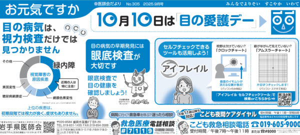 10月10日は「目の愛護デー」 目の病気は、視力検査だけでは見つかりません 目の病気の早期発見には眼底検査が大切です